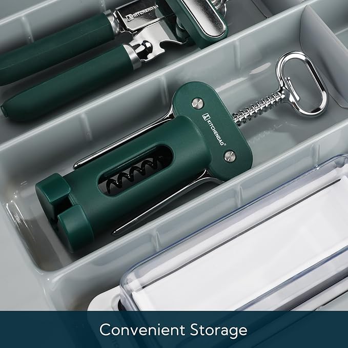 - Convenient Storage: The foil cutter could be attached to the wine opener for easy storage. The corkscrew can be placed in the drawer, or stand on the counter