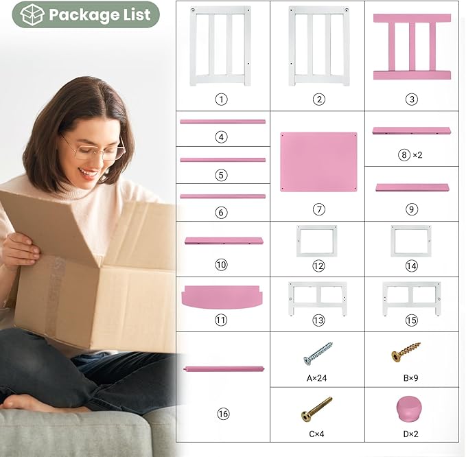 COSYLAND Kids Kitchen Step Stool, Toddler Standing Tower with CPC & FSC Certification, Removable Anti-Drop Railing Safety Rail Enjoys Unique Patented Design A Anti-tip Stable Structure Pink & White