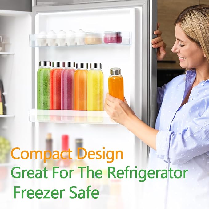 - GLASS BOTTLES FOR JUICING AND MORE: Durable stainless steel lid with air and water-tight seals, it’s completely airtight to keep your beverage fresh without any worry of spills. Throw this glass water bottle in your bag or car and get a healthy start to your day with a juice, smoothie, brew, ice tea, iced coffee, milkshakes, Kombucha. The 100% leak proof glass bottle will never leave a leaky mess no matter how you place it. The clear glass helps you quickly spot the drink you're in the mood for.
