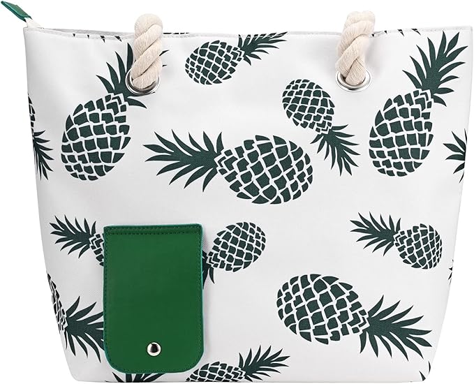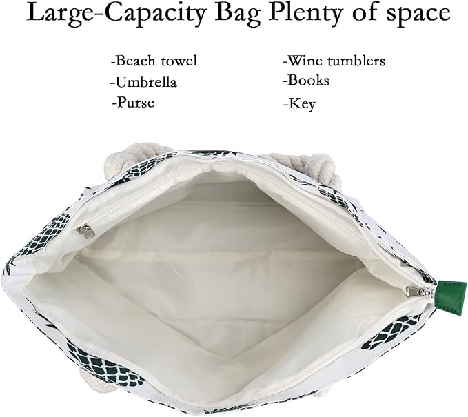 - LARGE BEACH BAG:Size at L16.54"xH13.39"xW5.5",Fully functional design with a stylish lined interior with side pockets, there is enough space to keep your lipsticks,cosmetics,beach towel,beach hat,flip flop,sunscreen and sunglasses,swimsuit and other necessities.