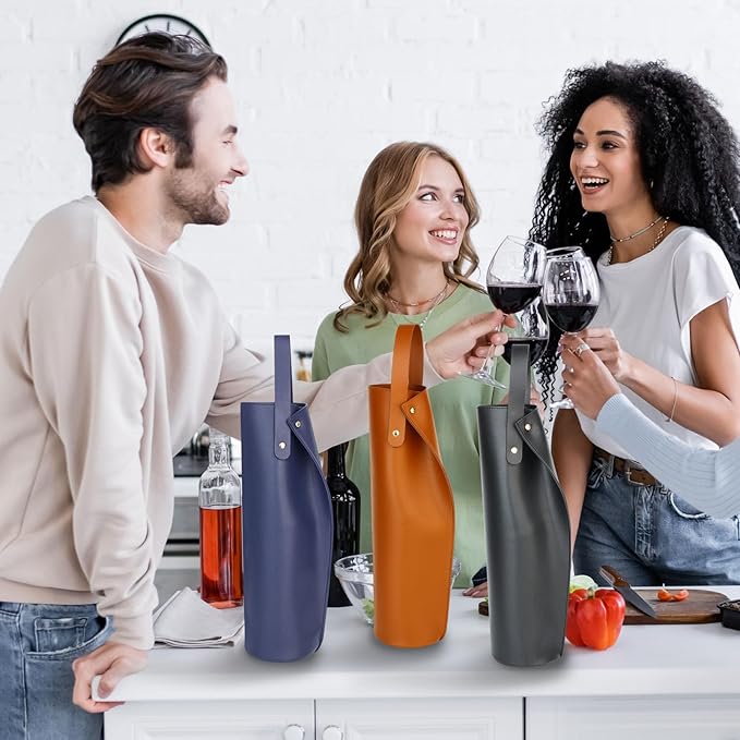 - 1pc Wine Gift Bag, Reusable PVC Leather Wine Tote Carrier, Double Layered Wine Gift bag carrier, Birthdays Bridal Showers Christmas or Other Holidays Gifts Party-Black/Navy Blue/Brown