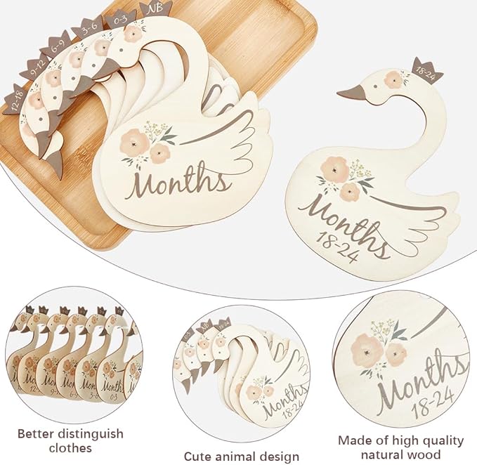 CRASPIRE 8Pcs Wooden Baby Wardrobe Dividers Swan Nursery Decor from Newborn to 24 Month Hanger Seperaters Baby Closet Organizers Nursery Infant Wardrobe Hangers Divider for Newborn Shower
