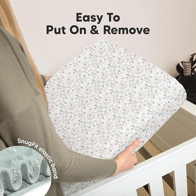 - Easy To Put On - Our fitted crib sheet uses SnugFit Tech, a smart fabric knit that allows the fabric to stretch when you are fitting or removing the crib sheets neutral from the toddler crib. No more struggling with rigid fabric!