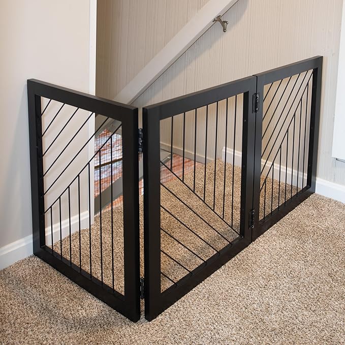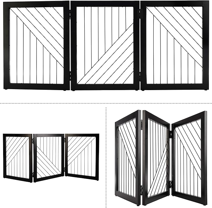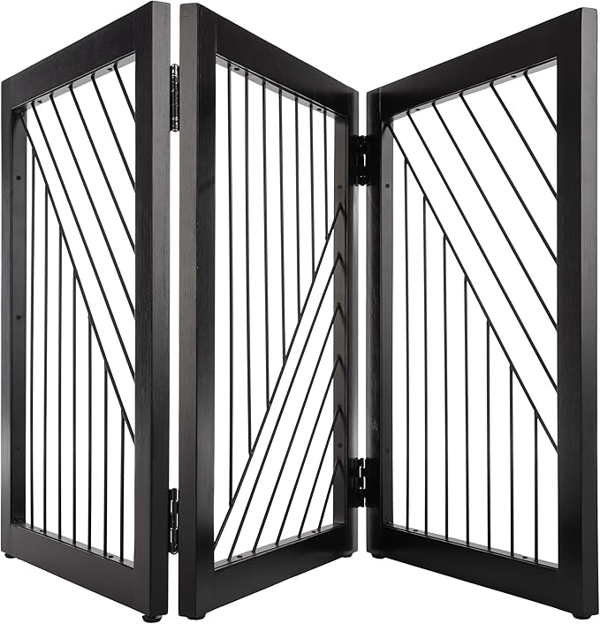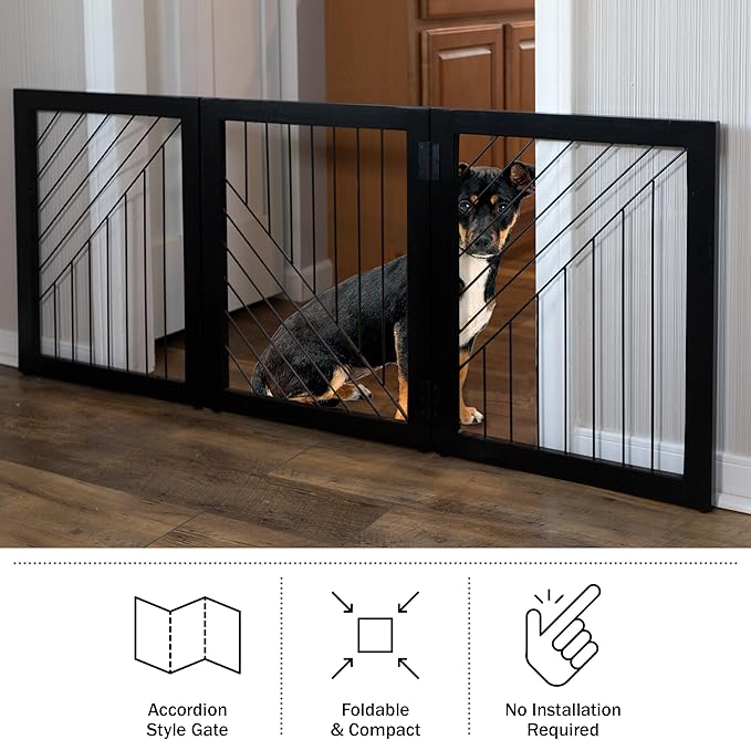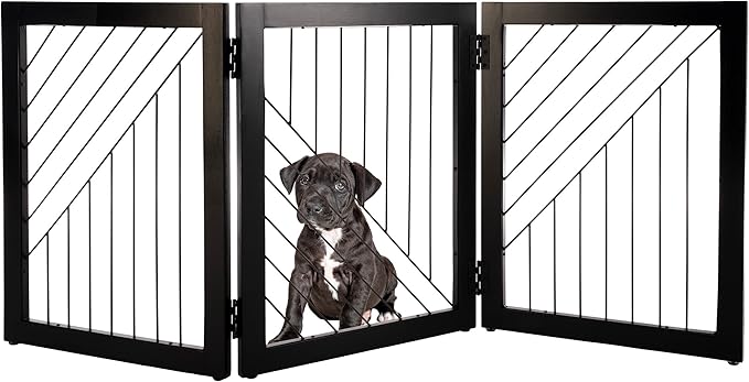 Pet Gate - 3-Panel Indoor Folding Dog Gate for Stairs or Doorways - 54x24-Inch Freestanding Pet Fence for Cats and Dogs by PETMAKER (Black)