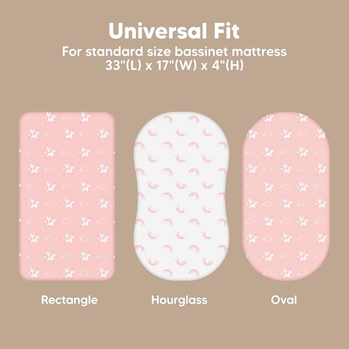 - 2-Pack Bassinet Fitted Sheets - KeaBabies Soothe Bassinet Mattress Sheets, sized at 33" x 17" with a depth of up to 4", provide a universal fit for all bassinet mattress pad types. They can be used as hourglass, oval, rectangle bassinet sheets.