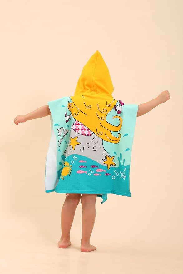 Mermaid Hooded Towels for Kids, Kids Beach Towels for Boys/Girls, Swimming Towels/Towel Robes/Wearable Towels/Pool Towels for Kids 2-10, Poncho Beach Towels for Kids, Hooded Beach Towels for Toddler