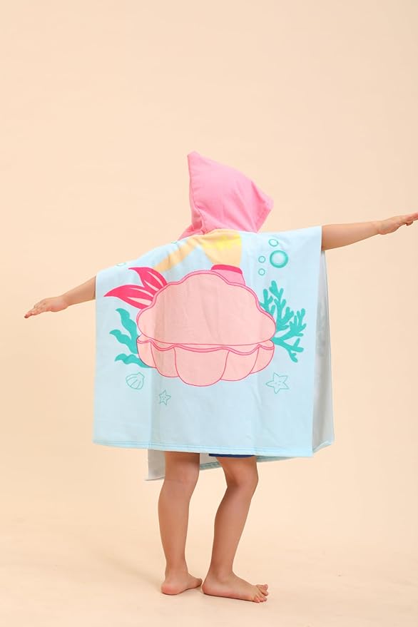 Mermaid Hooded Towels for Kids, Poncho Beach Towels for Kids, Kids Beach Towels for Boys/Girls, Swimming Towels/Towel Robes/Wearable Towels/Pool Towels for Kids 2-10, Hooded Beach Towels for Toddler