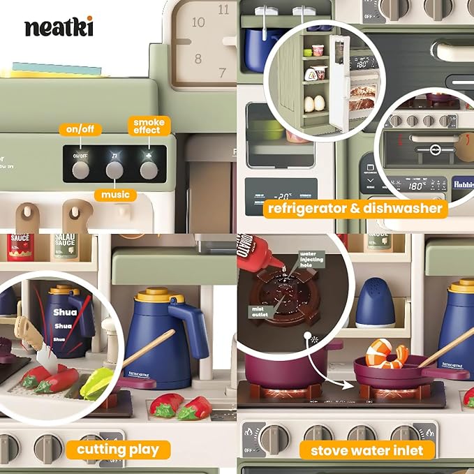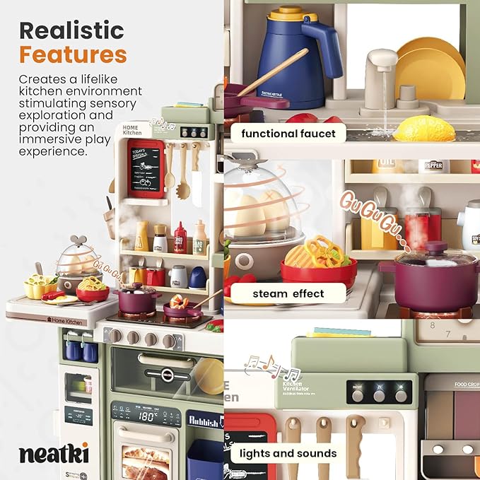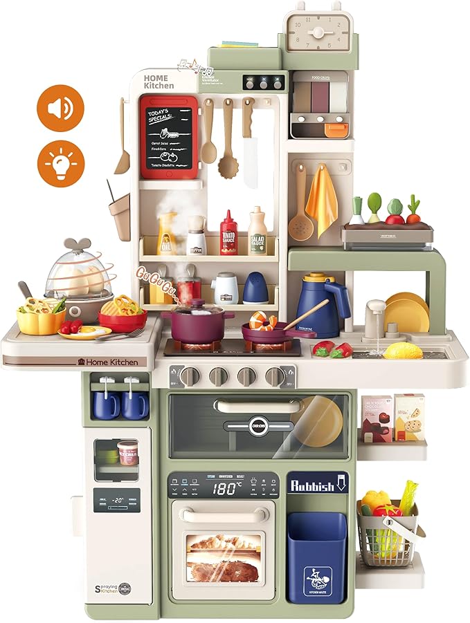 - Exciting Steaming Effects – Watch as the kitchen comes to life with realistic steaming effects, enhancing the pretend cooking experience and sparking creativity.