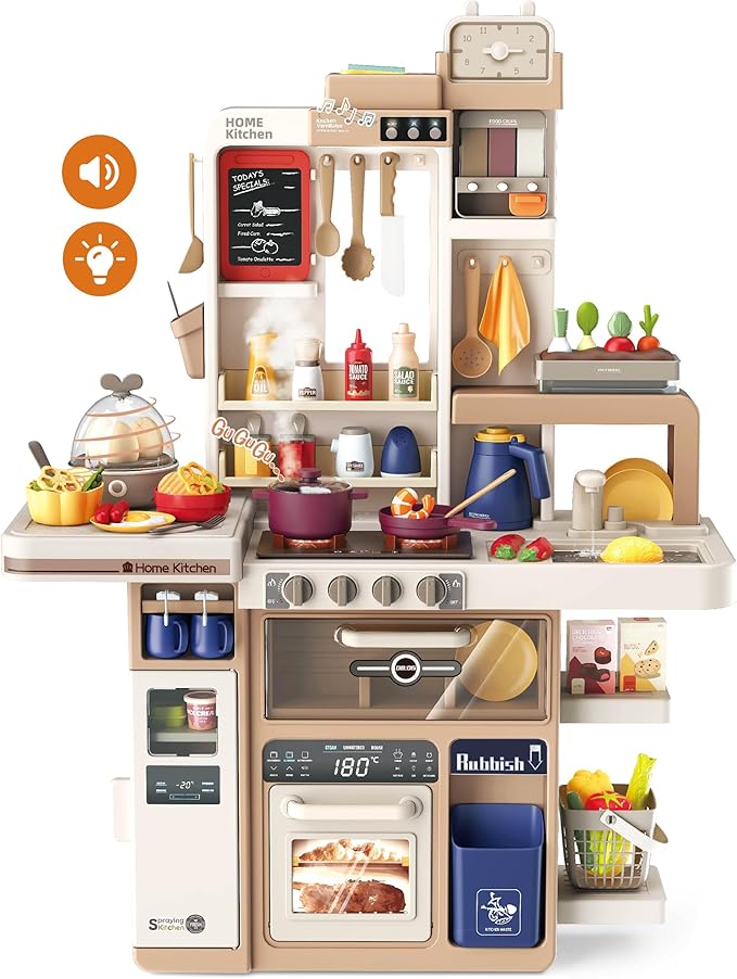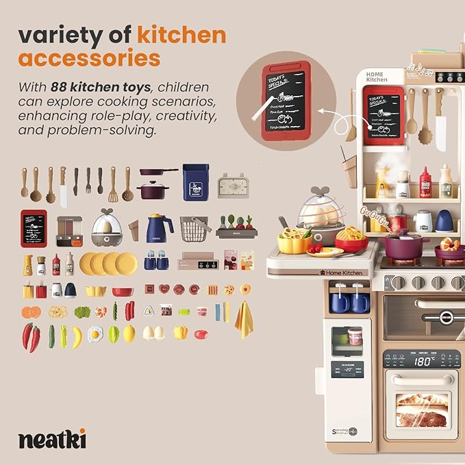 88-Piece Kids Kitchen Playset: 27.16 x 10.62 x 36.61 inches, Interactive Features, Realistic Design, and Educational Fun for Ages 3 and Up (Light Brown 88)