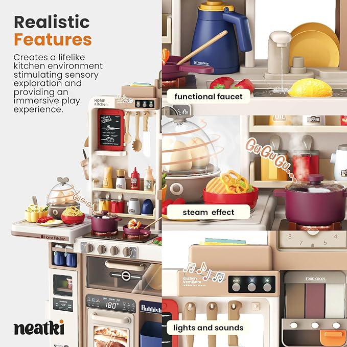 - Exciting Steaming Effects – Watch as the kitchen comes to life with realistic steaming effects, enhancing the pretend cooking experience and sparking creativity.