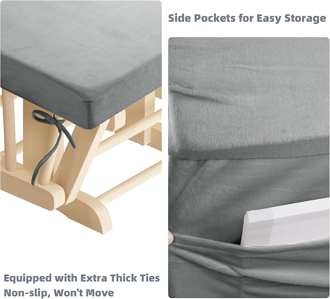 5 PCS Velvet Glider Rocker Replacement Cushions with Side Storage Pocket, Thickened & Supportive Cushions Set for Indoor Nursery Rocking Chair, Llight Grey