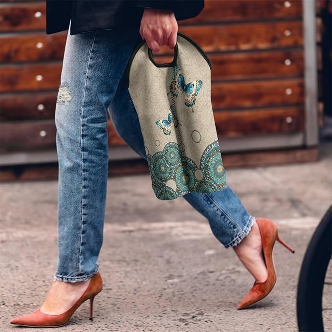 doginthehole 2 Bottle Wine Bag Boho Butterfly Wine Bottle Protector Carrier Tote Bag Portable Neoprene Hand Bag Champagne Bottle Holder for Travel with Handle