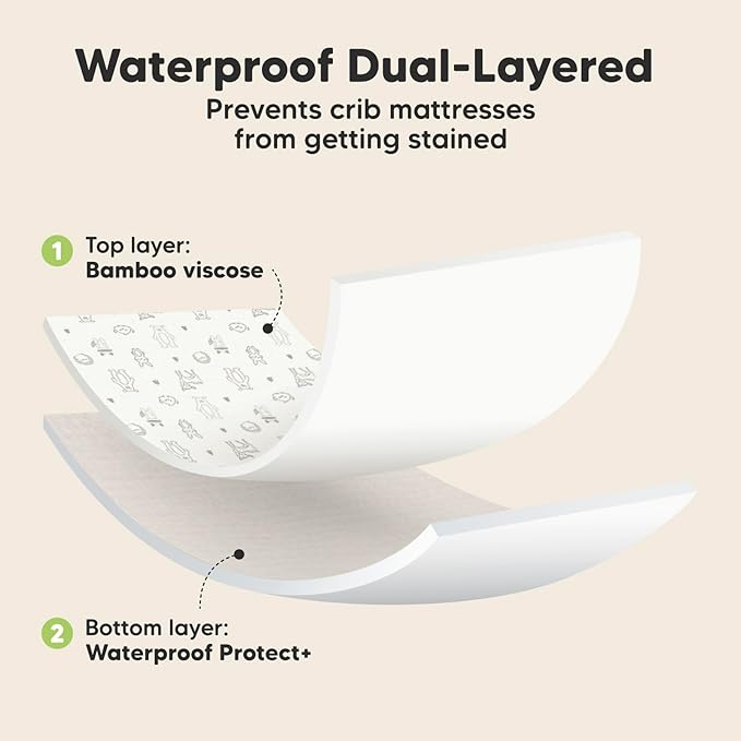 - Quality Doubled Down - Double-layered, double-stitched, and double the value. These machine-washable, dryable waterproof crib sheets offer lasting, reliable protection for your baby's crib mattress, giving you more time for the things that matter.