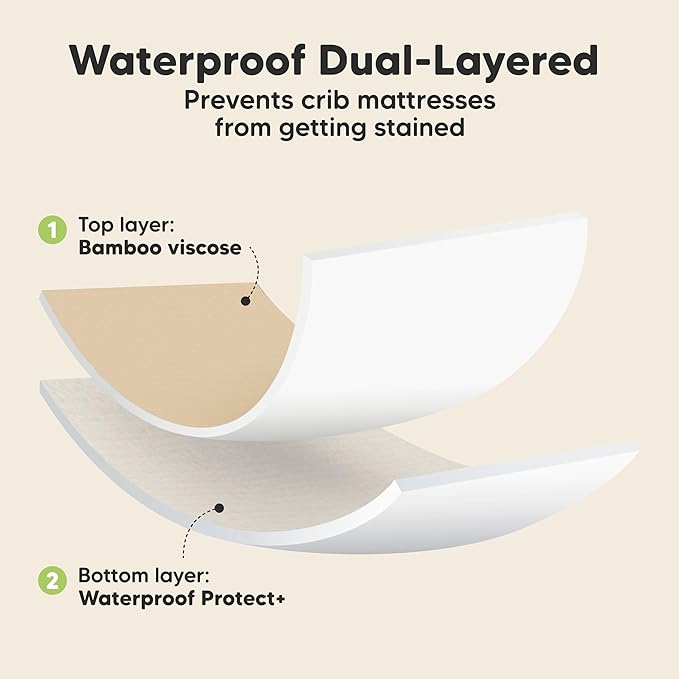 - Quality Doubled Down - Double-layered, double-stitched, and double the value. These machine-washable, dryable waterproof crib sheets offer lasting, reliable protection for your baby's crib mattress, giving you more time for the things that matter.