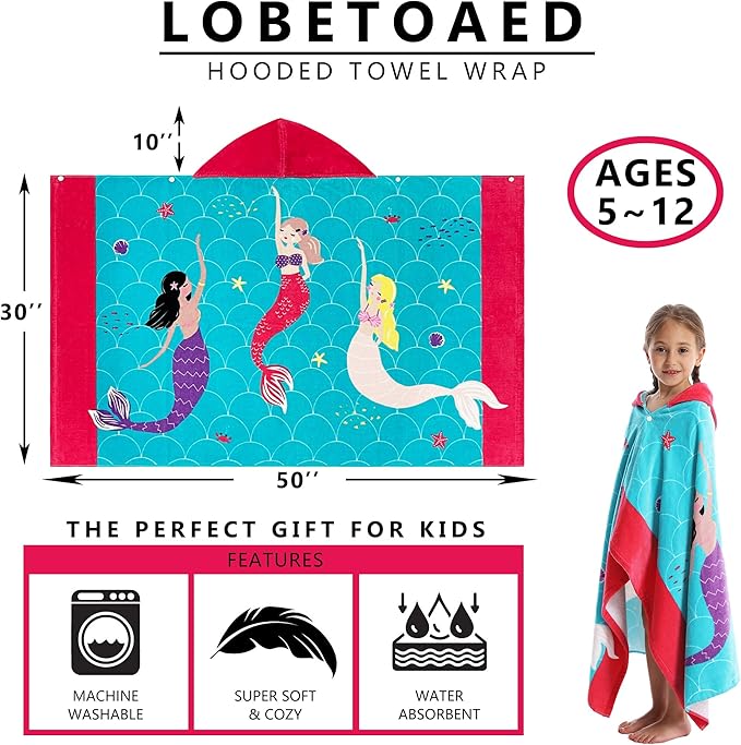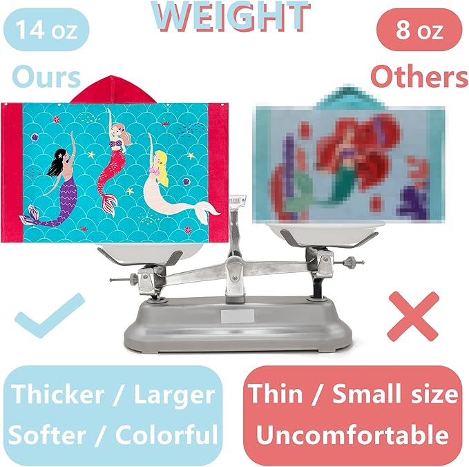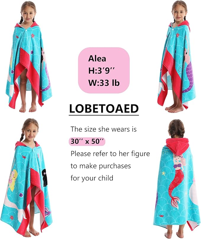 - 【OVERSIZE SIZE KIDS TOWEL】: A hooded towel bath wrap measuring 50" x 30" (127 x 76cm) with a 10" x 10"(25 x 25cm) hood.It comes in at 14 ounces(400 grams),it's pretty thick!Suitable for toddlers&kids from 5 to 12 years old.It is big enough to accompany your child's growth