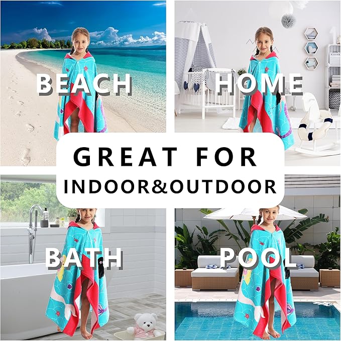 - 【MACHINE WASHABLE & NO FADE】: It can full cover up your child when they need to change clothes at beach or pool. Wearable bath towel is perfect for indoor and outdoor, bathroom, home, beach or pool accessory. Thanks to the excellent quality of the toddler towels, you can put it in the washing machine and dryer without worrying about the pattern fading