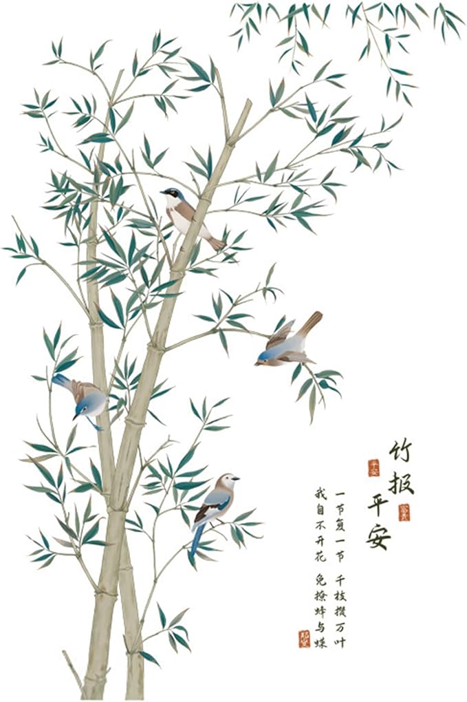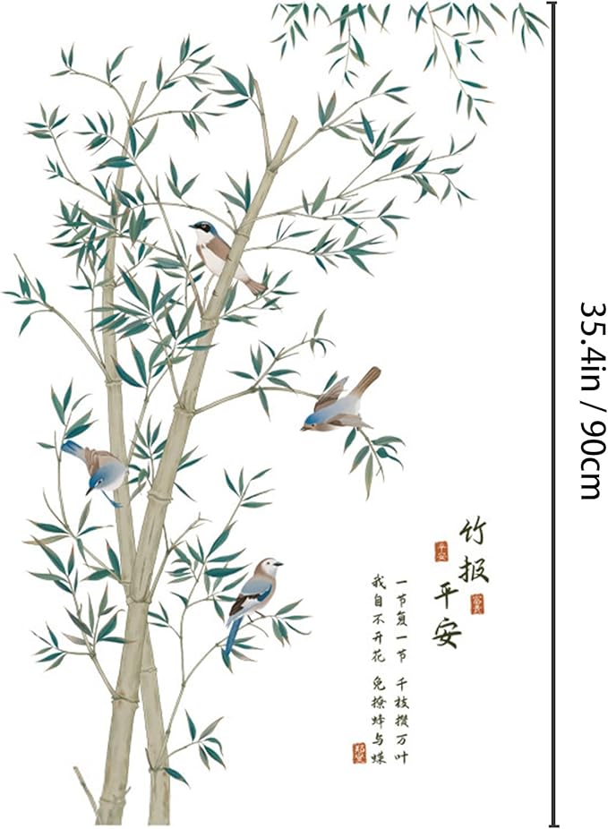 Large Bamboo Wall Stickers, Removable DIY Green Plants Flying Birds Wall Murals Peel and Stick 3D Wall Art Stickers Home Decor for Gilrs Bedroom Nursery Rooms Living Room