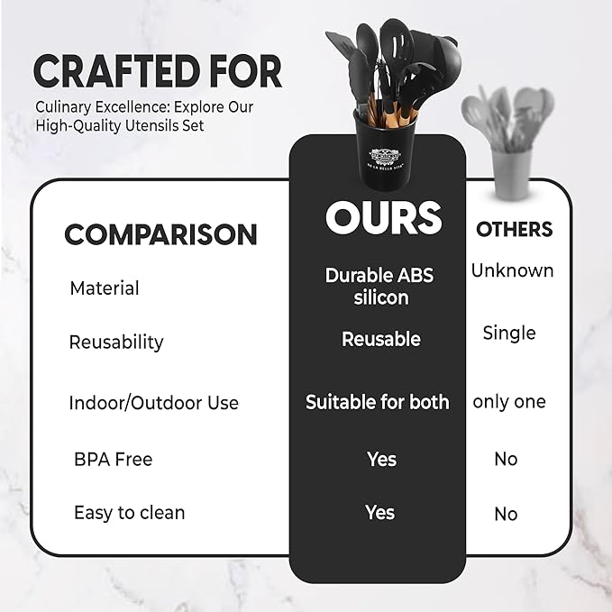 • Heat-Resistant and Durable: The silicone utensils are heat-resistant up to 450°F, making them suitable for use in hot pots, pans, and ovens. They are also durable and can withstand heavy use without breaking or bending. The wooden handles provide a comfortable grip and prevent heat transfer from the utensils to your hands.
