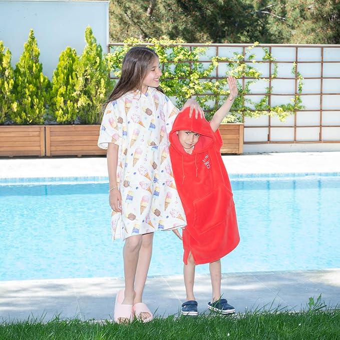 - ✅ Convenient Features: Includes a hood for extra warmth and drying hair and a front pocket to store small essentials like goggles, sunscreen, or snacks.