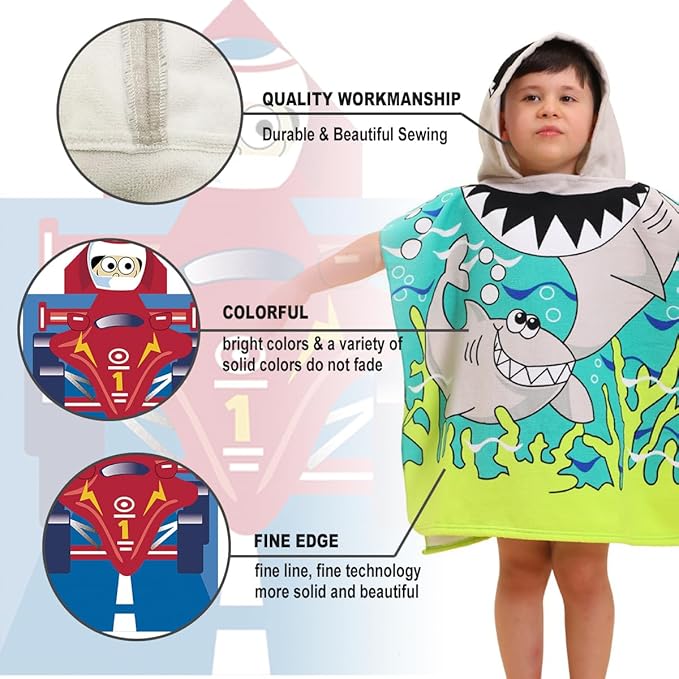 Hooded Kids Beach Towels - Soft Microfiber Poncho Towel for Ages 1 to 6, Quick Dry & Lightweight Swim Cover-ups, Ideal for Boys and Girls