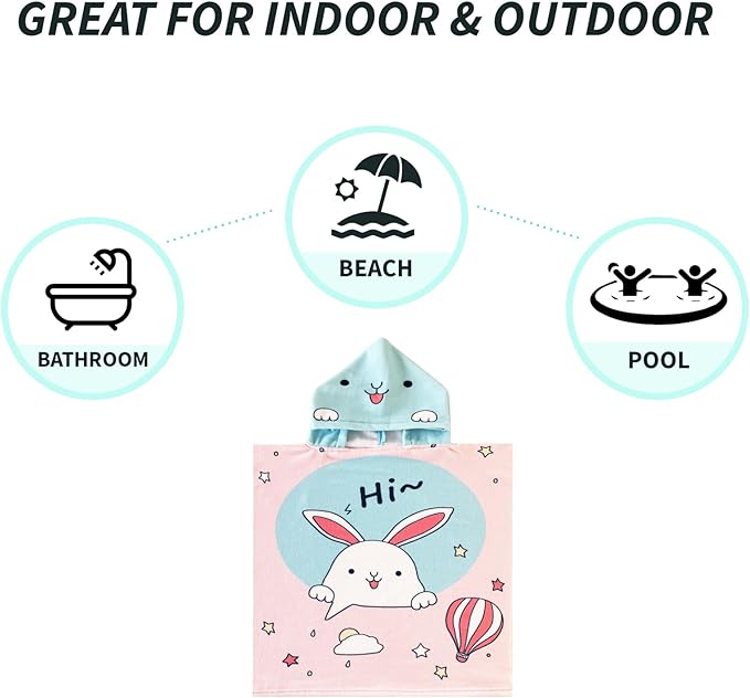 - MATERIAL: Toddler pool beach towel with hood is made of microfiber,this material is very soft, suitable for kid's young skin, friendly to people with sensitive. Hooded beach bath towel poncho have strang absorbent, better than regular towel.