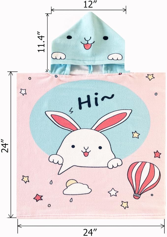 - SIZE: The kids hooded beach pool towel poncho measures 24"x36" in full-length and 24"X24" in folded-size with a 11.4x12" hood. This baby beach bath towels with hood is large enough for growing toddlers and kids(1-6 years old) or anyone under 50 inch girls boys and baby.