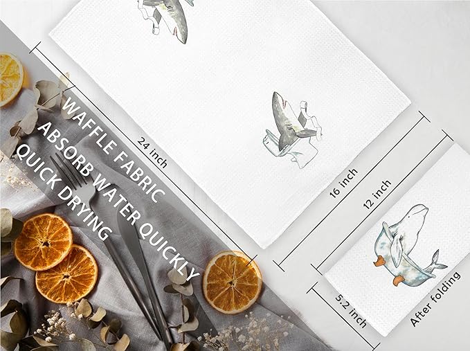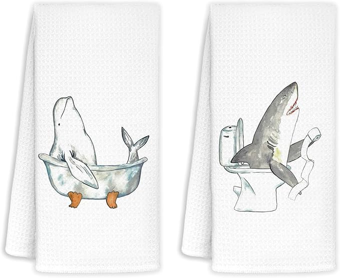 Shark Hand Towels for Bathroom Set of 2 - Shark Bathroom Decor, Coastal Beach Hand Towels, Shark Gifts for Shark Lovers, Coastal Bathroom Decor, 16x24