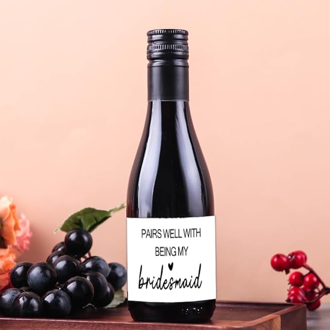 MKISHINE 16 Pcs Bridesmaid Proposal Gift Wine Bottle Labels Set, Bridesmaid Mini Champagne Labels, Bridal Party Groomsman Wine Stickers Bride Tribe Label, Maid of Honor Gifts for Friends, 2” x 3.5”