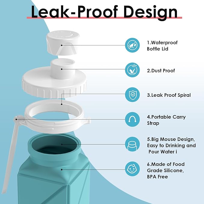 - Healthy and Safe Silicon: New Version travel water bottle made of BPA-free food-grade silicone and a food-grade plastic cap, BPA free and odorless,Non Toxic,Strong heat resistance and cold resistance.Water bottle ensure safe and hygienic,you can use it in your daily life,Durable 3-ply material built to last offer a much green way to environment matters