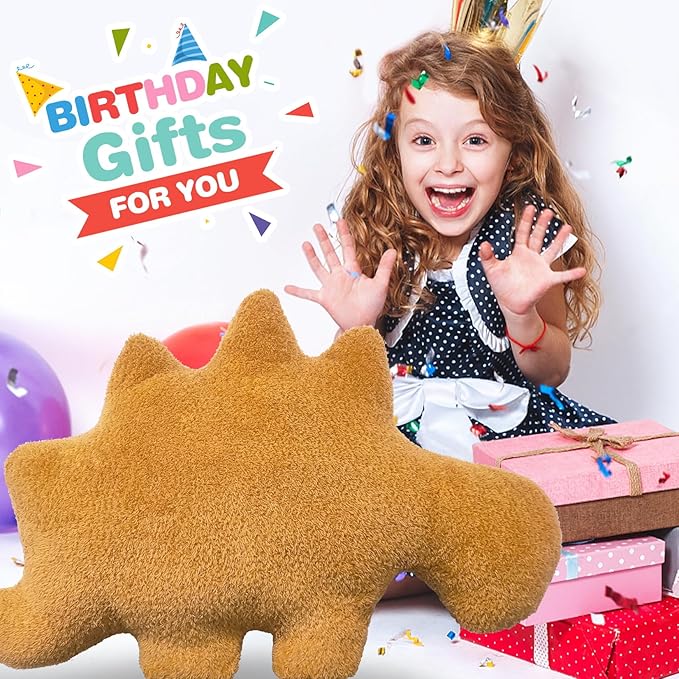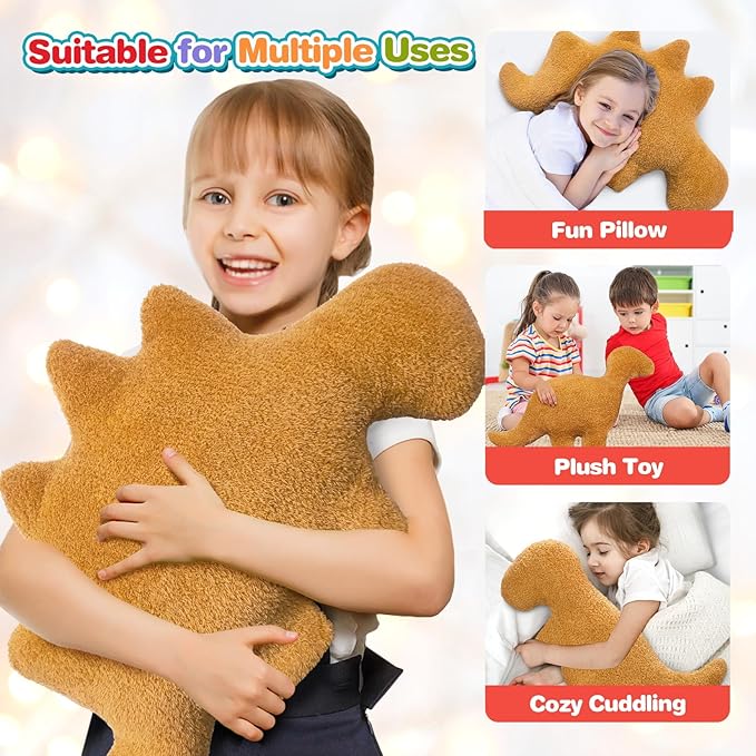 - Dino Chicken Nugget Pillow: Adorably cute and soft with added nostalgia from childhood dinners. You will love showing your family or friends and immediately seeing their smiles of surprise and delight. The whimsical decor addition will have everyone wanting one. This is a cute plush that makes a great gift for teen girls, teen boys, boyfriends, girlfriends, brothers, sisters, men, women.