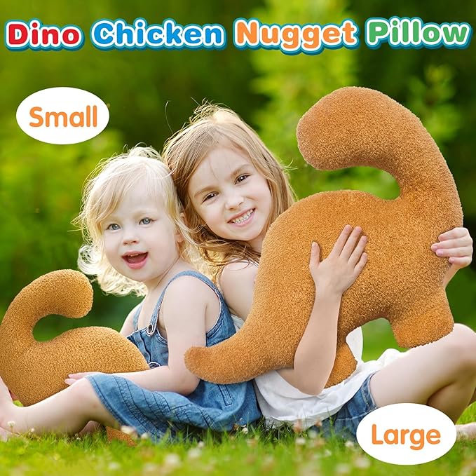 - Dino Chicken Nugget Pillow: Adorably cute and soft with added nostalgia from childhood dinners. You will love showing your family or friends and immediately seeing their smiles of surprise and delight. The whimsical decor addition will have everyone wanting one. This is a cute plush that makes a great gift for teen girls, teen boys, boyfriends, girlfriends, brothers, sisters, men, women.
