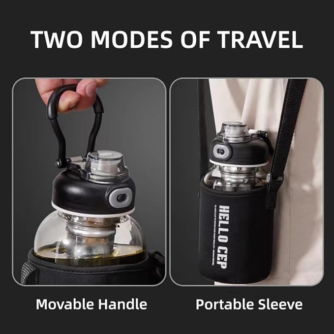 - 【STYLISH SLEEVE AND HANDLE】The large water bottle comes with a protective sleeve which not only adds style but also protects the bottle against bumps and scratches.The built-in handle provides a comfortable grip, making it easy to carry around wherever you go.