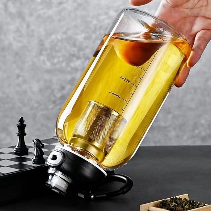 - 【PREMIUM BOROSILICATE GLASS】Large tea bottle made of borosilicate glass that ensures a pure drinking experience and can withstand both hot and ice water without much thermal expansions.