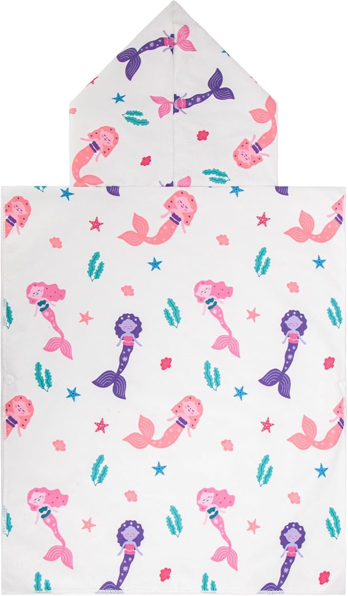 MissShorthair Kids Toddler Poncho Towels, Hooded Beach Towel for Girl&Boy, Surf Poncho Swim Changing Robe Microfiber Bath Towel for 4-6 Years Mermaid
