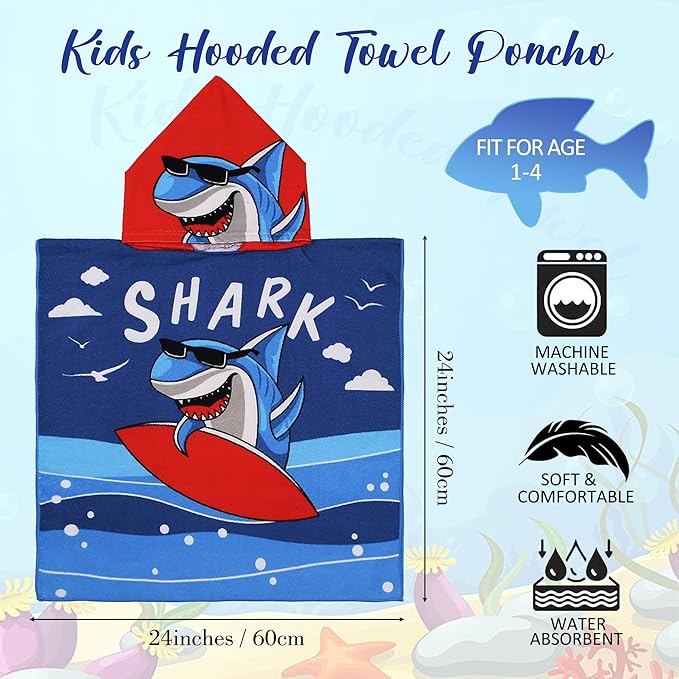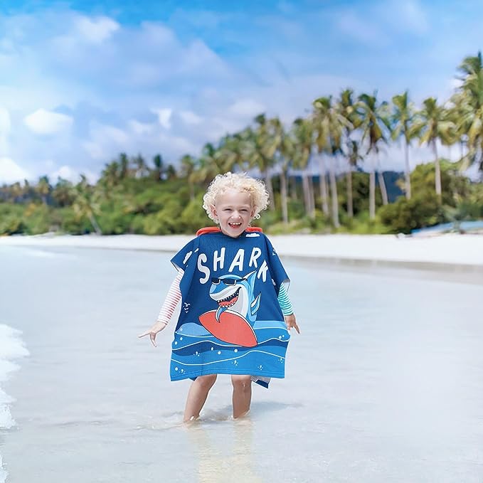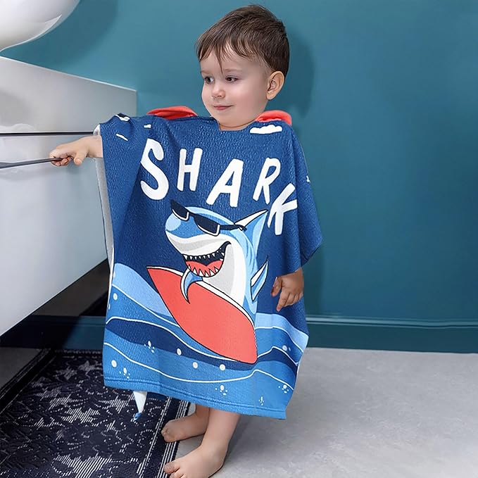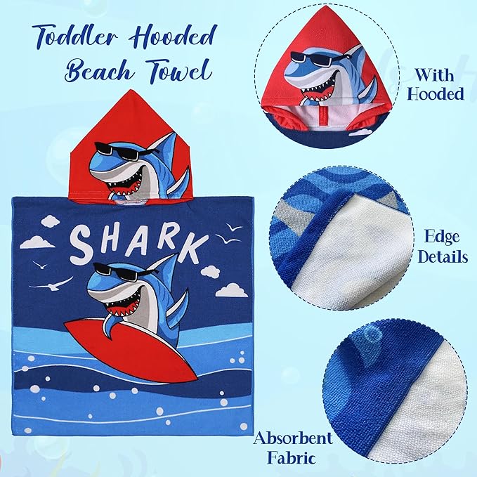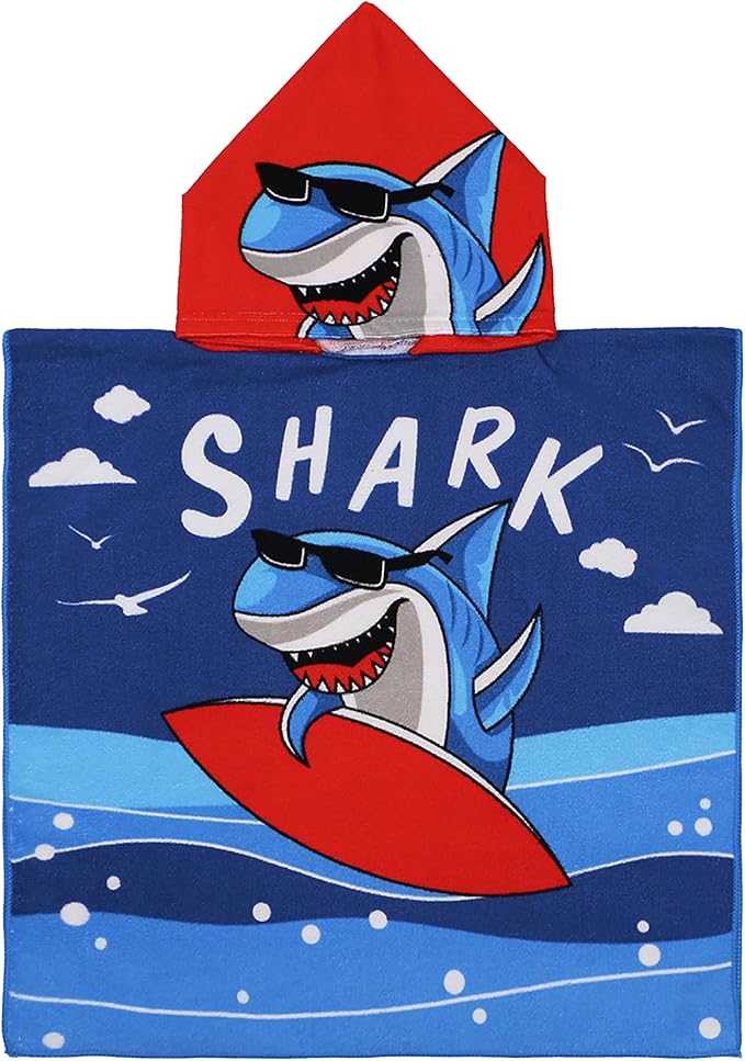 - CARTOON SHARK: This kid hooded towel printing with shark. The classic pattern keeps this beach towel stylish, while the adorable shark adds to its appeal, instantly winning the love of children! The cartoon suit for boys and girls, making your child stand out at the beach or pool