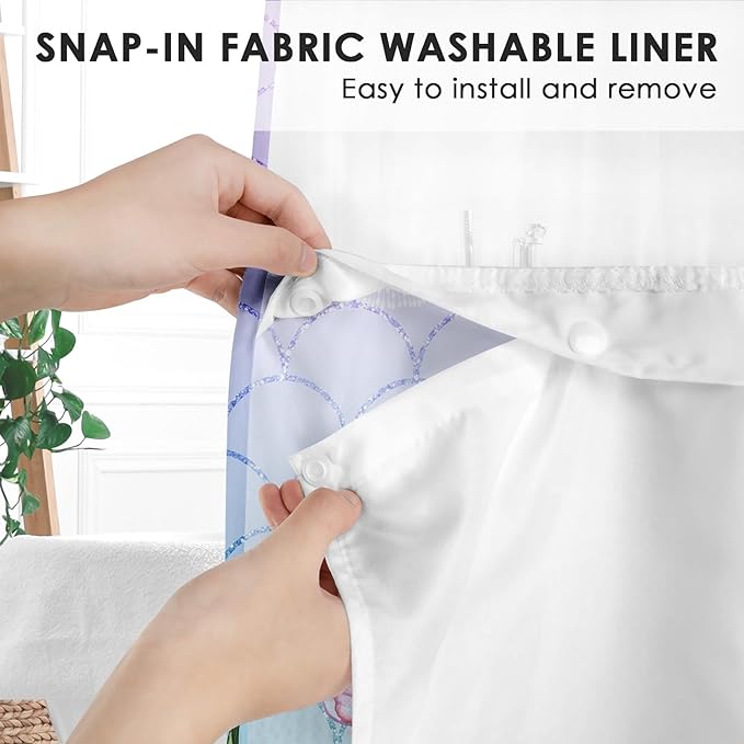 - [ Hotel & SPA ]:This no hook shower curtain is hassle-free due to detachable liner and built-in grommets, no need to remove shower rod, easy hang, self hanging shower curtains save time & money.