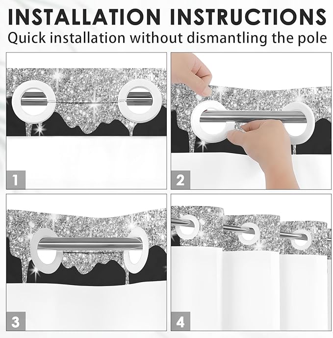 - [ No Hook Shower Curtain Set ]: Install in 20 seconds without the hassle of annoying and messy hooks, and no need to remove the rod! Made from 100% polyester,our shower curtain is not only waterproof and stain-resistant but also dries quickly.