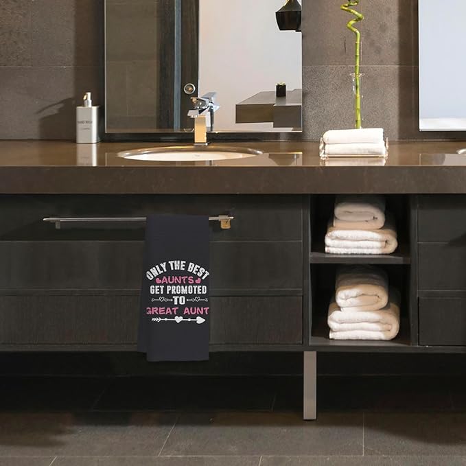Voatok Promoted to Great Aunt Kitchen Dish Towels 16x24 - Great Aunt Gifts, Great Aunt Baby Announcement Hand Towels for Bathroom Kitchen, Aunt