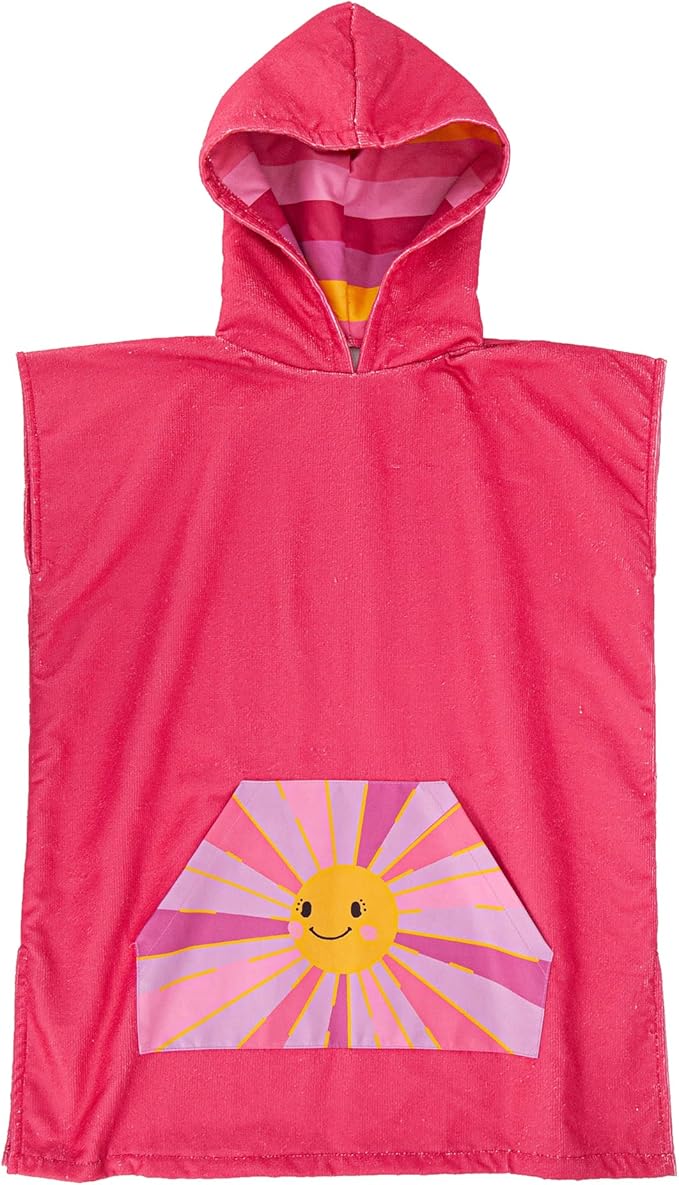 MissShorthair Towel Poncho for Kids, Hooded Beach Towel for Girl&Boy, Surf Poncho Swim Changing Robe Microfiber Bath Towel 2-5 Years Pink Little Sun