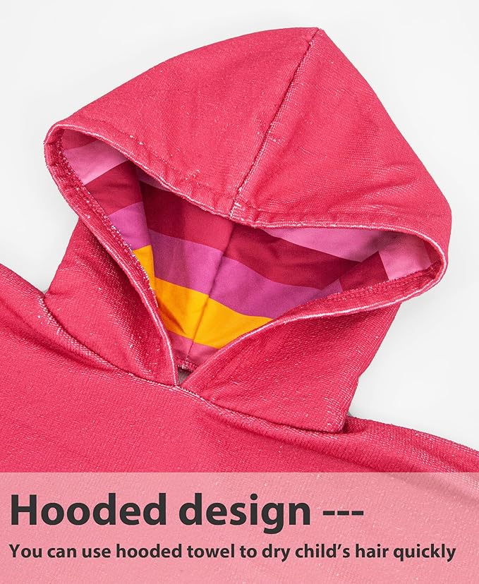 - [SOFT AND COMFORTABLE] This beach towelling robe for kids is made from soft Microfiber. The material is very soft and suitable for the sensitive skin of young children. This girls and boys hooded poncho towel for kids is absorbent and will dry your child easily. This hooded towelling robe is a must have summer accessory
