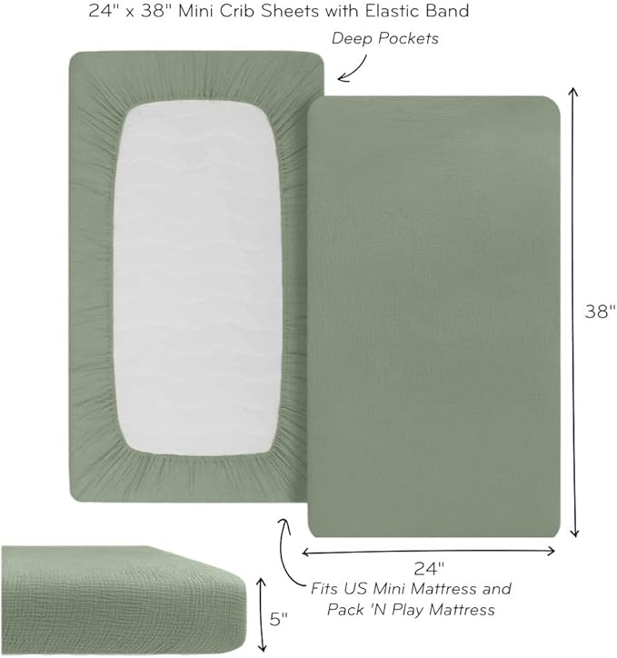 - PERFECT FIT US MINI CRIB SHEETS: Sized 24’’ x 38’’, the fitted Mini Crib Sheet features deep pockets and an elastic band around the entire edge for a secure and comfortable placement.