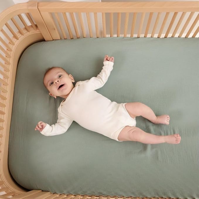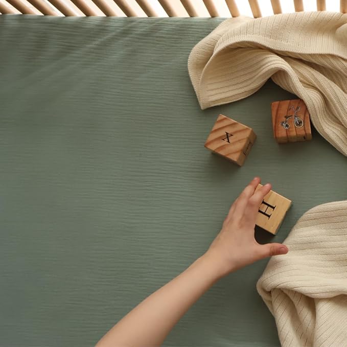 Denmark - Super Soft Muslin Mini Crib Sheets - 24'' x 38'' - 100% Organic Baby Crib Sheets for Boys and Girls (Roman Green)