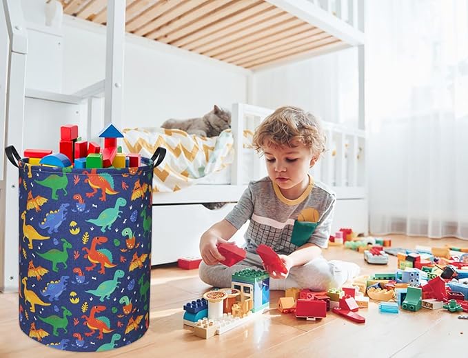 Dinosaur Kids Laundry Basket Baby Hamper Dinosaur Toy Storage Bin for Boys Room Decor Baby Nursery Hamper Gift Baskets for Bedroom Bathroom(Blue Dinosaur)