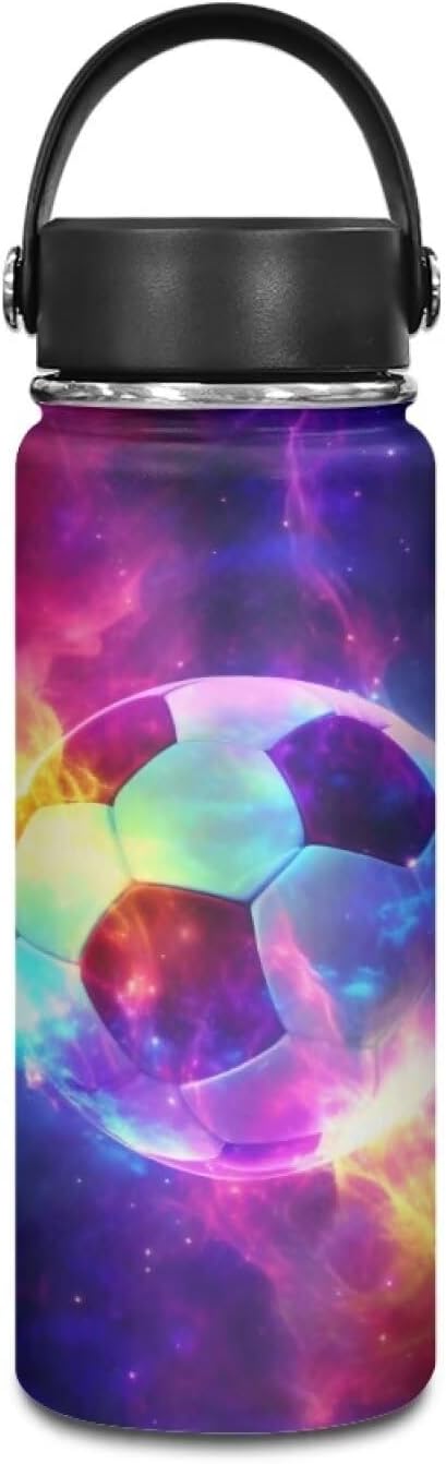 Galaxy Soccer Insulated Water Bottle Stainless Steel Leak Proof Vacuum Easy to Clean Lightweight Keeps Cold and Hot Great for Travel Hiking Biking Running,18 Oz