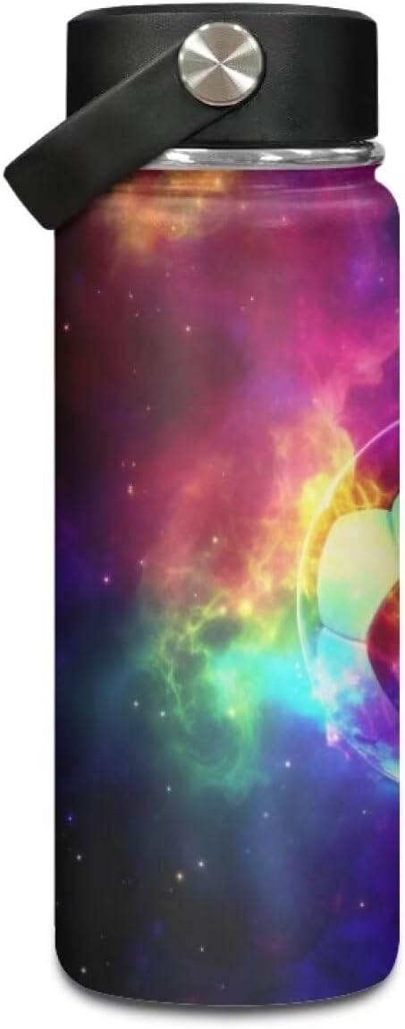 Galaxy Soccer Insulated Water Bottle Stainless Steel Leak Proof Vacuum Easy to Clean Lightweight Keeps Cold and Hot Great for Travel Hiking Biking Running,20 Oz
