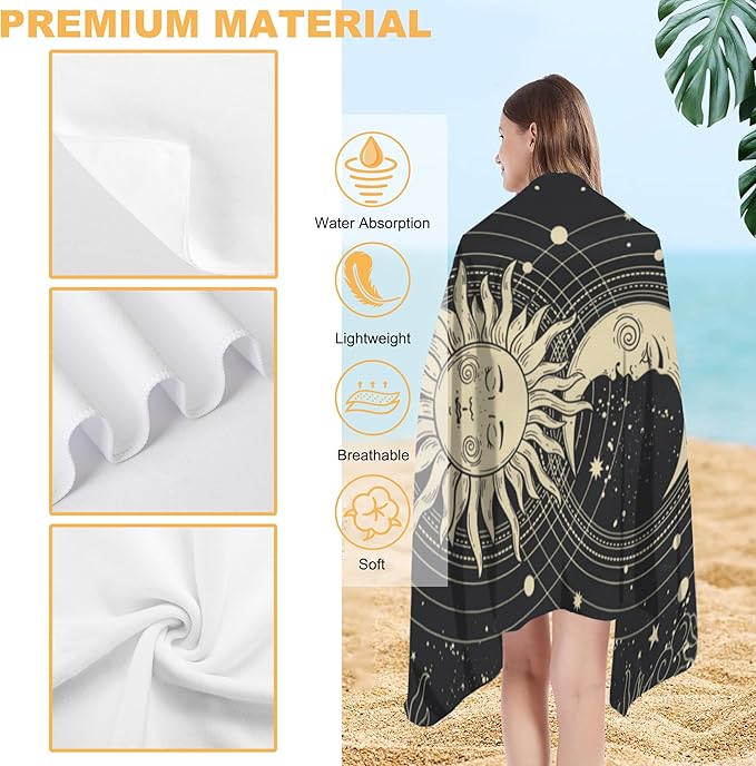Beach Towel Oversized, Mystical Tarot Card Sun Moon Face Microfiber Beach Towels, Lightweight, Absorbent, Quick Dry, Sand-Free Beach Blanket, Unique Gift for Camping, Pool,Yoga, 29.5” X 59”
