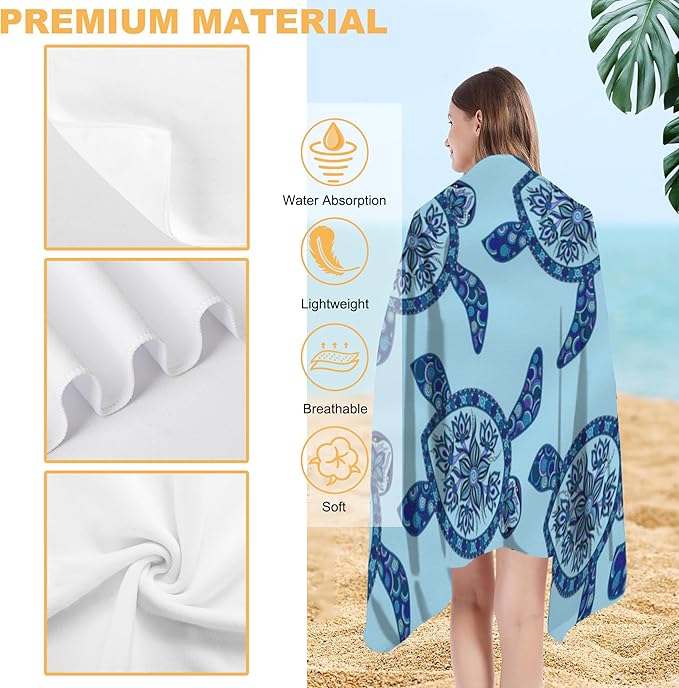 Beach Towel Oversized, Boho Sea Turtles Microfiber Beach Towels, Lightweight, Soft Absorbent, Quick Dry, Sand-Free Beach Blanket, Unique and Ideal Gift for Camping, Pool,Yoga, 29.5” X 59”