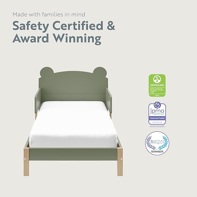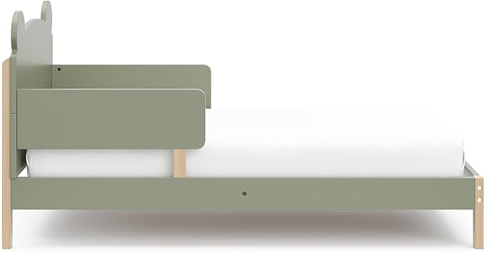 Storkcraft Teddy Bear Toddler Bed (Olive with Driftwood) - GREENGUARD Gold Certified, includes Toddler Safety Guardrails, Fits Standard Crib & Toddler Mattress, Stylish 2-Tone Design
