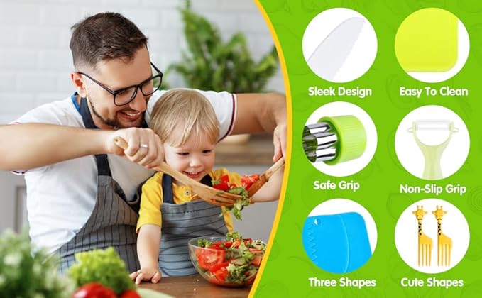 - STYLE LEARNING - It can be enhanced by using real kids' cooking tools. This not only saves time and money but also provides toddlers with everything they need to slice, dice, and cut their food into cute shapes without any risk of hurting themselves.