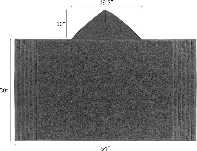 - Contents: One (1) Premium 100% soft ring spun cotton, highly absorbent 615 GSM, 30x54 inches kids towel with hood. The hood measures approximately 19.5 inches in width and 10 inches in height. The hooded towel wrap weighs approximately 1.6 lbs. Oversized for growing toddlers 3 - 7 years.